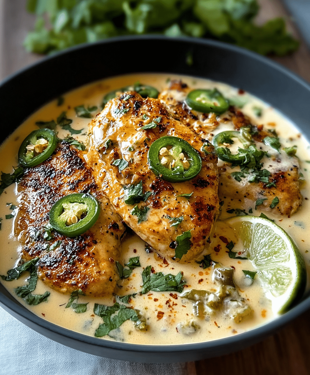 Tender chicken breasts seared to golden perfection, then smothered in a rich, velvety sauce packed with fresh jalapeños, garlic, onion, and melted cheddar—this Spicy Jalapeño Chicken with Creamy Sauce is a bold, comforting dinner that delivers serious flavor in every bite. Finished with fresh lime juice and cilantro, this dish strikes a beautiful balance between heat, creaminess, and brightness, making it a standout option for weeknight dinners or special occasions alike.