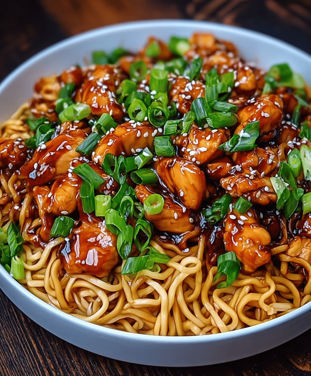 It combines tender chicken, flavorful noodles, and a savory garlic sauce that becomes glossy and slightly sticky as it cooks. The balance of soy sauce, honey, garlic, and ginger creates a deeply satisfying flavor that’s both comforting and bold.