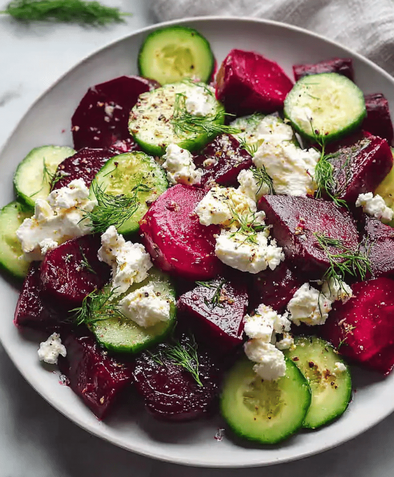 If you’re craving a colorful, fresh, and flavorful salad, this Vibrant Beet Feta Salad with Cucumber and Dill is the perfect choice. Juicy roasted or canned beets combine beautifully with crisp cucumber, creamy crumbled feta, and fragrant fresh dill, all tossed in a zesty lemon vinaigrette. This salad is perfect for a quick lunch, a side dish for dinner, or a healthy addition to meal prep. The beets add natural sweetness and a striking color, while the feta brings creaminess and tang. Crisp cucumber provides refreshing crunch, and dill adds a delicate herbaceous note. With just a handful of ingredients and 12 minutes from start to finish, it’s a stunning, nutrient-packed dish that’s as visually appealing as it is delicious.